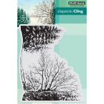 After drying that section I stamped just the left hand trees from the PB dressed in snow stamp again in black soot ink. I used a paintbrush to darken the stamped image and extend the trees a little more on the right. To finish I rubbed off the masking fluid and mounted the panel onto a white card base. All the supplies are linked below. I hope you have had a great week.