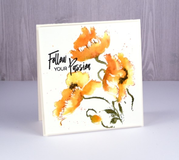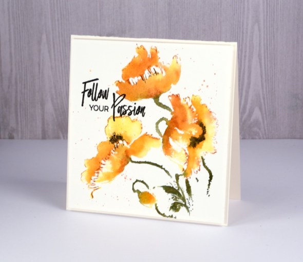 Posted: April 11, 2018 Filed under: spontaneous joy | Tags: Penny Black stamps, Tsukineko Memento inks 6 CommentsI am happy to share another video with you today. I know…that’s three this year and it’s only April. The future is looking promising. So far the three I have posted were all filmed on the same day but rest assured there are three more in process now. The stamp on today’s card is another pretty brushstroke stamp from Penny Black. I have a few techniques I use with brushstroke stamps ranging from very detailed to very loose and watery. This card has quite a loose look but it’s still clear we are looking at poppies!