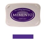 I used a couple of teardrop memento inks and a marker to ink the stamp. With the teardrops it is possible to apply ink somewhat strategically. I started with the lighter grape jelly ink and dabbed it here and there over the stamp. My panel was in my stamping platform so I was able to do grape jelly ink first, then add some dabs of the darker elderberry ink second. I went back and forth with the two inks and occasionally a spritz of water until I was happy with the image. I coloured the stems with a memento tuxedo black marker, stamped to complete the image then moved the panel to stamp a second branch the same way.