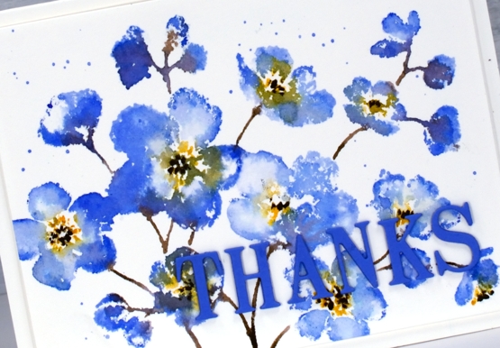 I hope you enjoy today’s no-line watercolour video. When I first saw this stamp I knew it would be perfect for the technique. There are a few little petals but most of the image is made up of open leaves and petals which are easy to see while painting. I used soft stone ink for the initial image on cold press watercolour paper and Sennelier watercolour paints for all the painting.