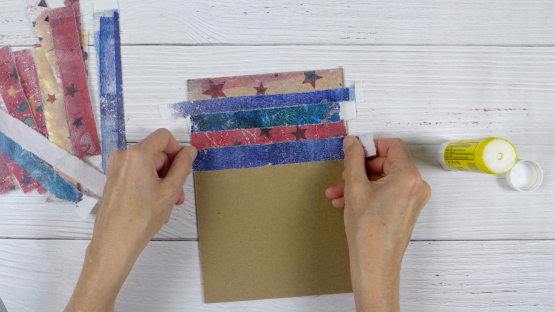 I have been creating collage panels with my many gel prints lately, most for Christmas cards. The striped and patchworked collages looked so pretty I decided to try the process on Grafix chipboard.