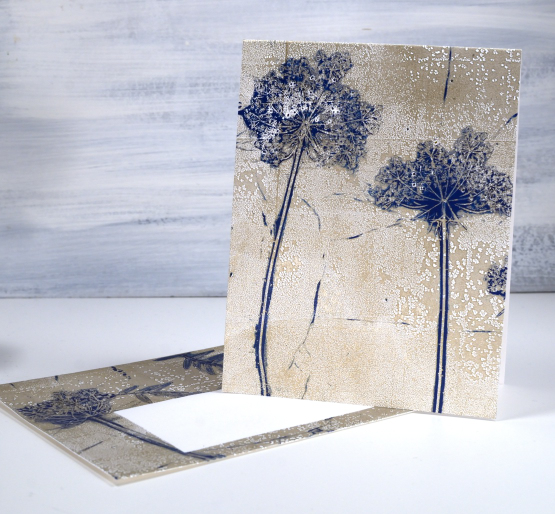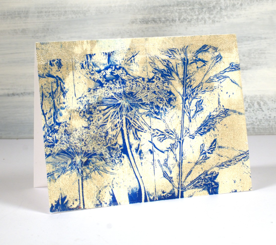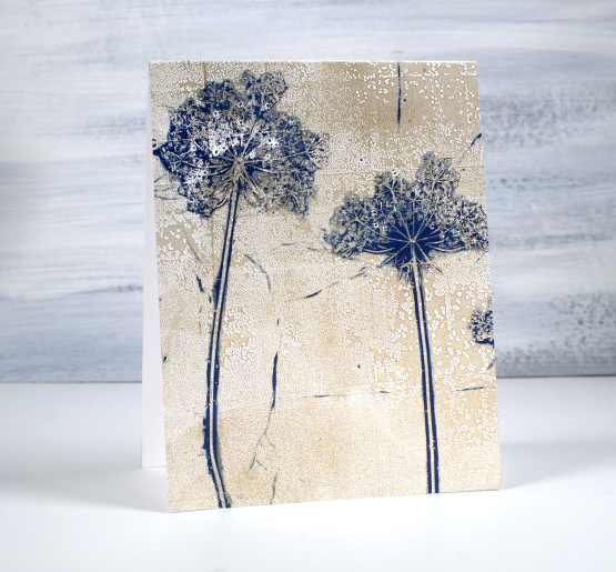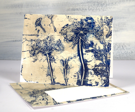 You can see on this card featuring Queen Anne’s Lace and grasses that the print does not reach to the top of the card front. I guess I didn’t press down evenly when taking the print.