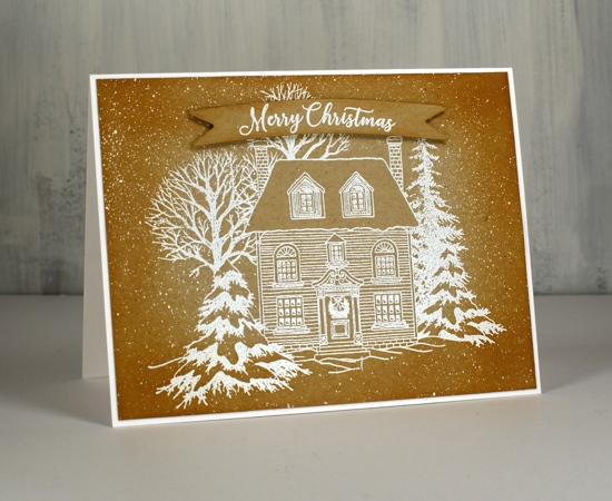 The last step was a sprinkling of icing sugar aka splatter of white gesso to complete the snowy look. All the stamps are from Penny Black and are linked below along with the other supplies.