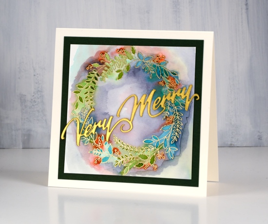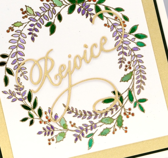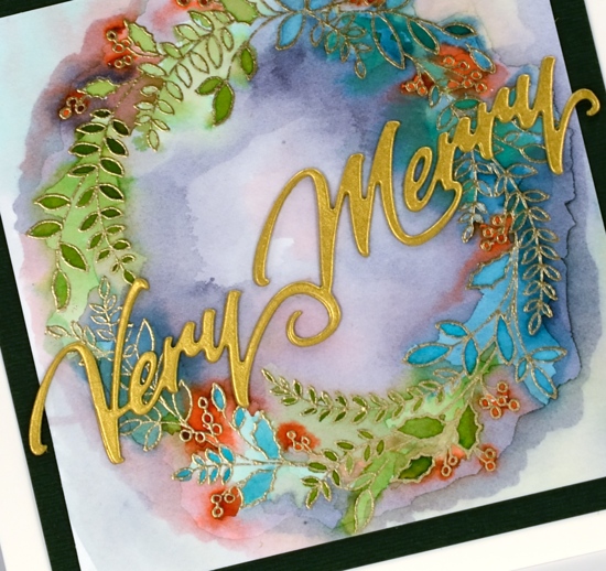 Posted: October 24, 2018 Filed under: winter chirp | Tags: Fabriano Watercolour Paper, Peerless Transparent Watercolors, Penny Black creative dies, Penny Black stamps, WOW embossing powders 16 CommentsI have one wreath, ‘winter chirp’ from Penny Black, presented in two ways today. The first is neat and tidy, the other is loose and messy. I started with gold embossing and used similar colour schemes on each one.