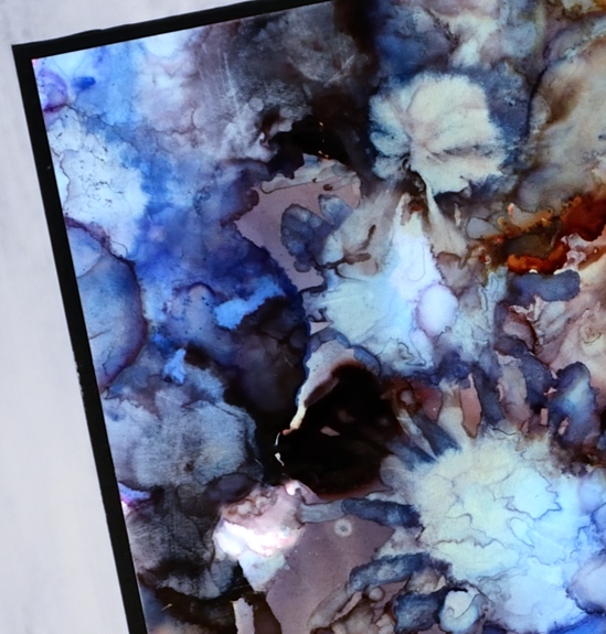Posted: May 16, 2018 Filed under: Alcohol Ink, Anything but basic friendship | Tags: My Favorite Things, Ranger Alcohol Ink, Yupo Paper 7 CommentsIf you have played with alcohol inks you will know it’s hard to stop once you get started. When I was trying out my new heavyweight yupo from the Foiled Fox I decided to experiment with another colour combo packaged by Ranger. This panel features the three inks from the Miner’s Lantern set, stonewash, rust and pitch black. What I loved about these colours as I started experimenting was the variety of tones and shades I was able to get as the colours mixed.