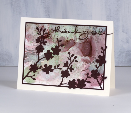 Posted: May 18, 2018 Filed under: Alcohol Ink, branching out, cherry blossom | Tags: Penny Black creative dies, Ranger Alcohol Ink, Yupo Paper 3 CommentsI hope you have enjoyed my alcohol ink projects this week. I could have happily continued playing with colour combinations and different techniques but other projects beckoned.